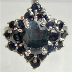 5490 - WHITE GOLD OVER STERLING SILVER SAPPHIRE RING - SIZE 7.5