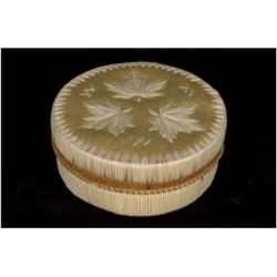 Quill and Birch Bark Basket Maple Leaf Design 6 1/4" D. 2 3/4" H. Fine Condition
