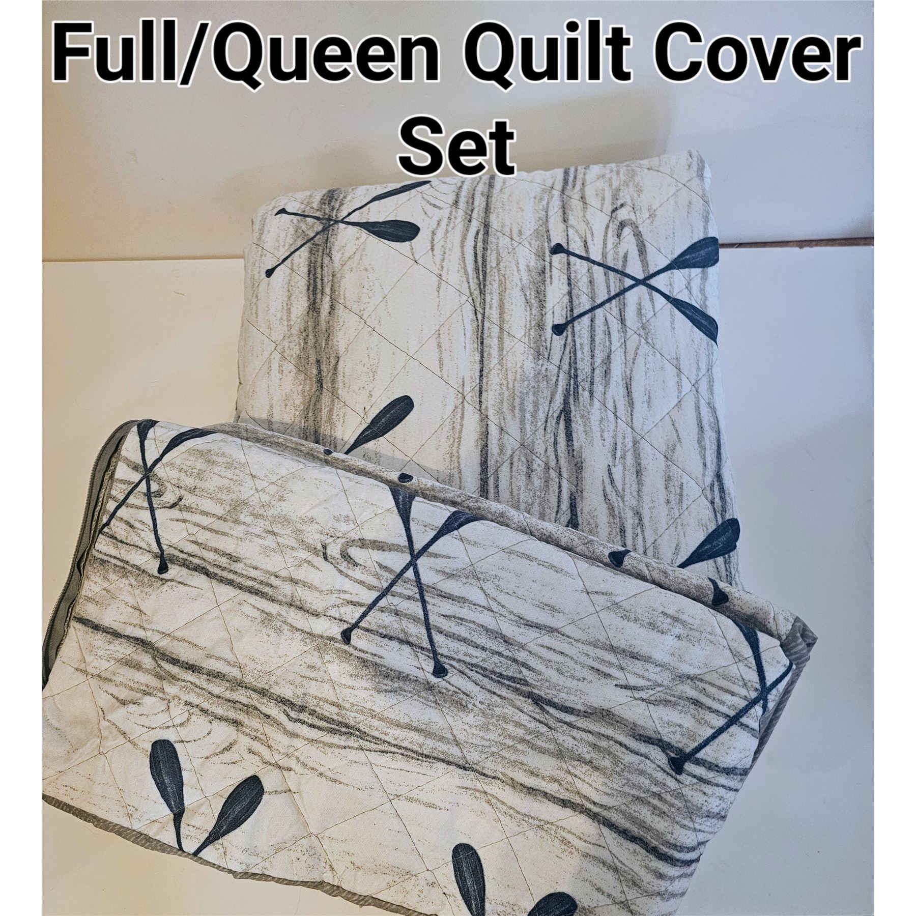 Full/Queen size quilt cover set with abstract design, includes matching pillowcases, new.