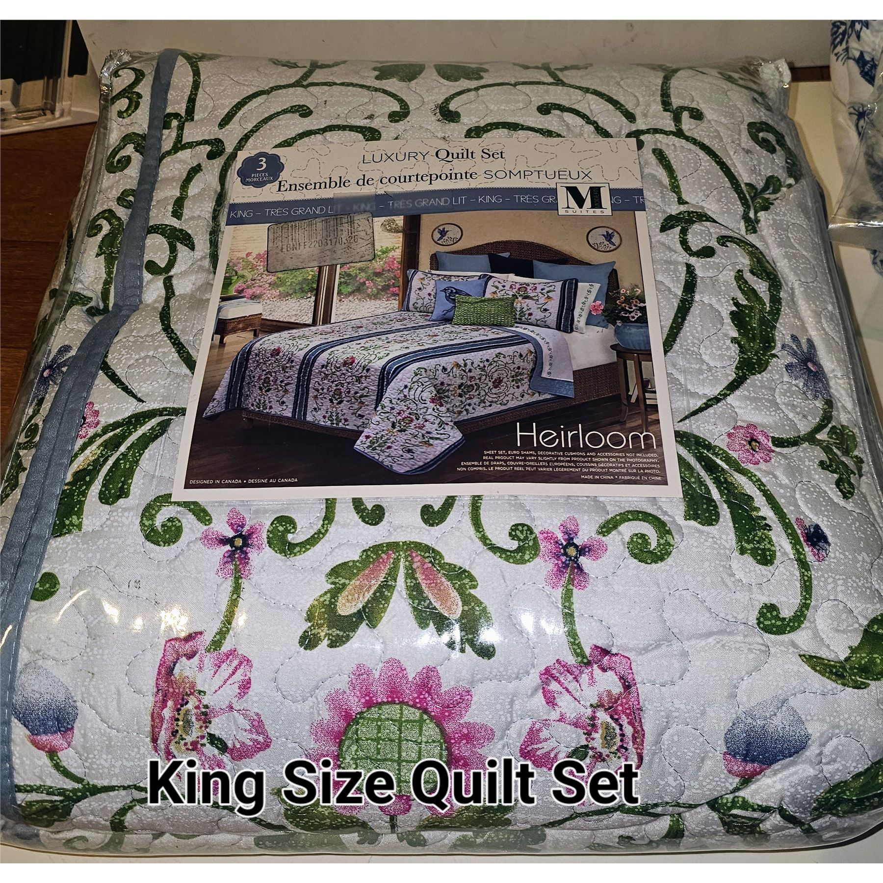 Luxury king-size quilt set with floral design, includes two shams, new.