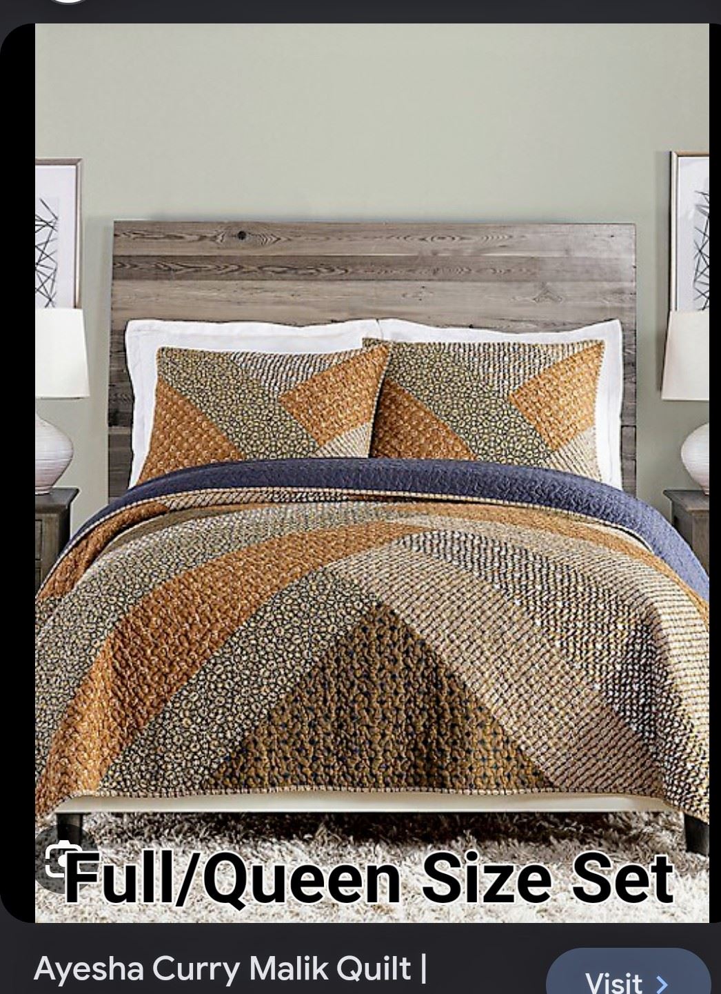 Full/Queen size quilt with matching pillow shams, geometric pattern, cozy and stylish, new.