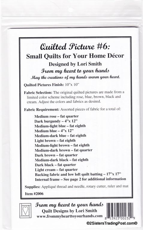 Quilted Pictures #6 Pattern designs by Lori Smith. Pattern is for 4 different quilted 10" x 10" squares. MSRP $9.00