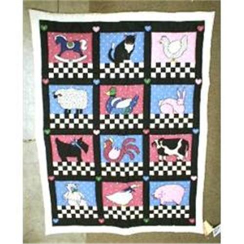 This Country Wall Hanging is hand quilted by Mennonite ladies. It is applique farm animals with a feather stitch edge. Each animal is a different country print thus exhibiting a wide variety of color. This wall hanging measures 44.5 inches and is in excellent condition. For additional information please contact Mindi by e-mail at