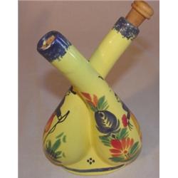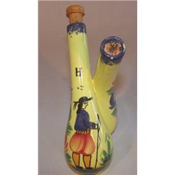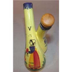 Quimper pc. One corked stopper is broken off. Stands 7" tall. Marked on bottom Quimper France and F575-D207 and artist SC initials.