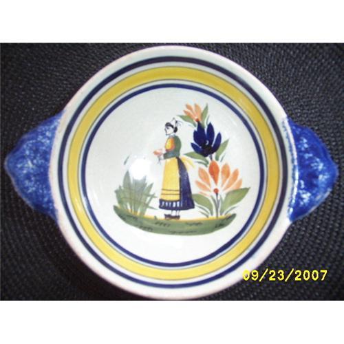 <tr><td>Title:Quimper two handled coffee bowl "Lady"</td></tr>