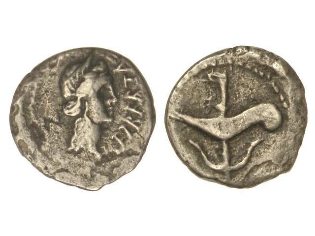 Quinario. 85-42 a.C. BRUTO. Anv.: LEIBERTAS. Cabeza de Libertad a derecha. Rev.: Ancla. C-5A. MBC-.
