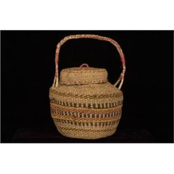 Quinault Storage Basket with Handle 13" H. 9" D. Fair Condition with Rim Crack