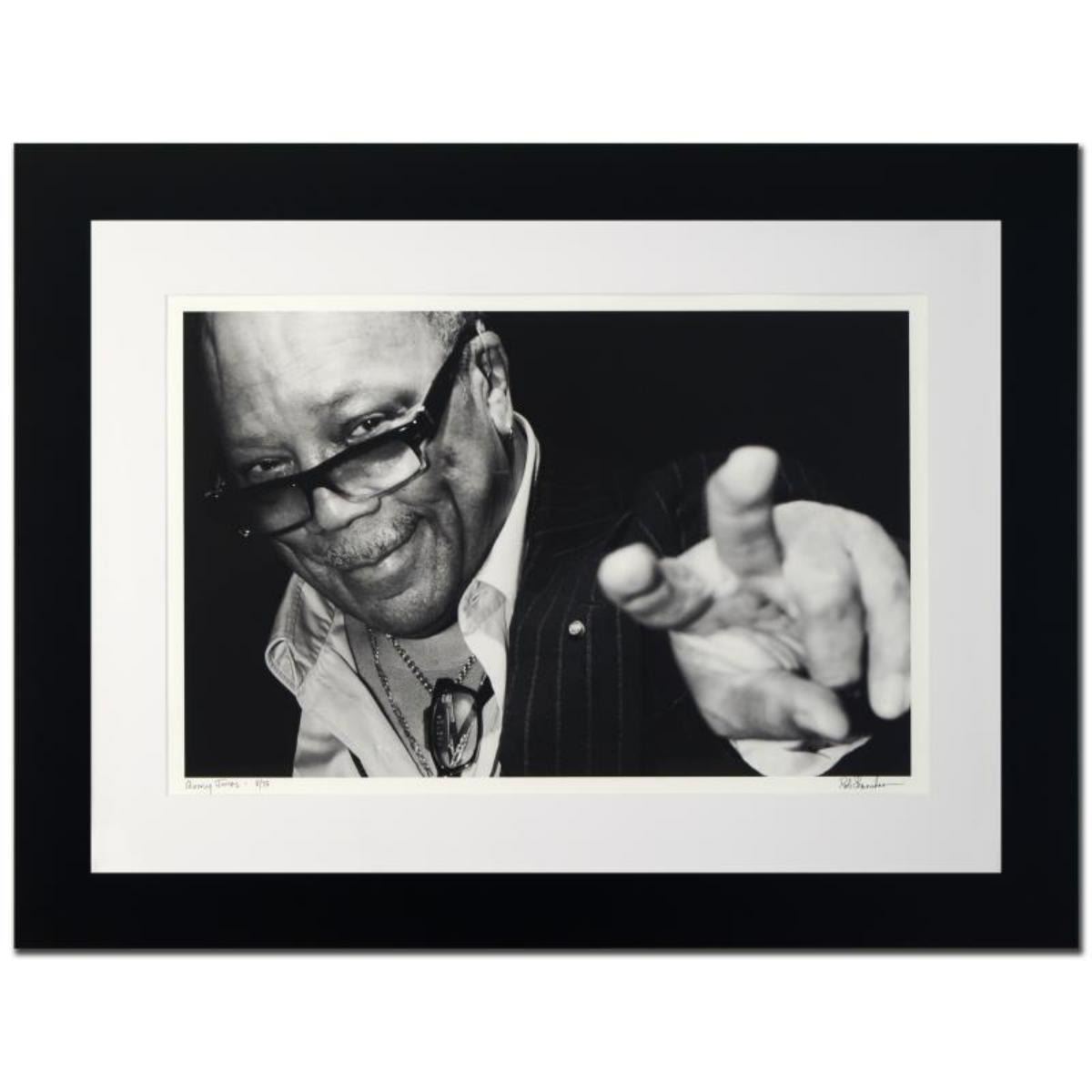 "Quincy Jones" is a limited edition giclee on paper, numbered and hand signed by acclaimed music industry photographer Rob Shanahan. This piece comes custom framed. Includes Certificate of Authenticity. Measures approx. 32" x 25" (with frame), 22" x 14.5" (image). Reference #: 237522.