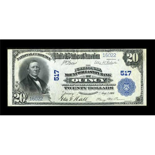 <B>Quincy, MA</B></I> - $20 1902 Plain Back Fr. 650 <B>The National Mount Wollaston Bank</B></I> Ch. # 517<BR> The paper remains quite bright and original on this note with engraved signatures. <B>Extremely Fine+.</B></I><BR><BR><b>Shipping:</b> Coins & Currency (<a target="_blank" href="http://www.heritageauctions.com/common/shipping.php">view shipping information</a>)