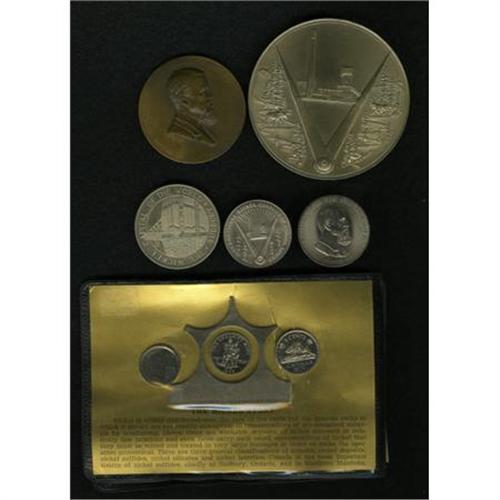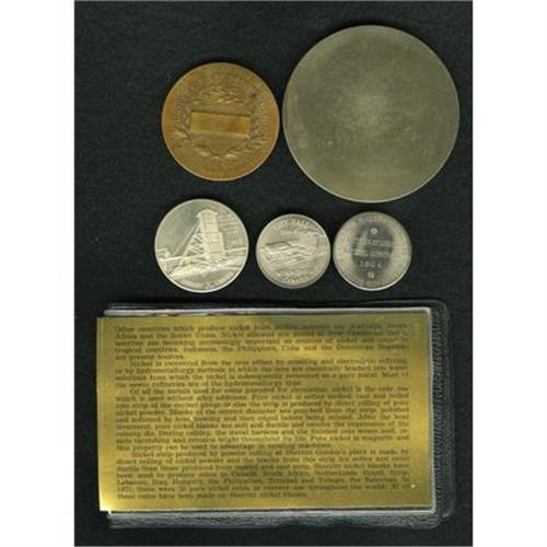 <B>Quintet of Medals and Tokens Related to Nickel Metal.</B></I> Medals and tokens dealing with either Joseph Wharton or the metal nickel. Includes a 76-mm, 228.9-gm uniface medal struck by the International Nickel Co. of Canada and engraved by Dora Pedery-Hunt that has a reported mintage of only 100 pieces.<BR><BR><b>Shipping:</b> Coins & Currency (<a target="_blank" href="http://www.heritageauctions.com/common/shipping.php">view shipping information</a>)