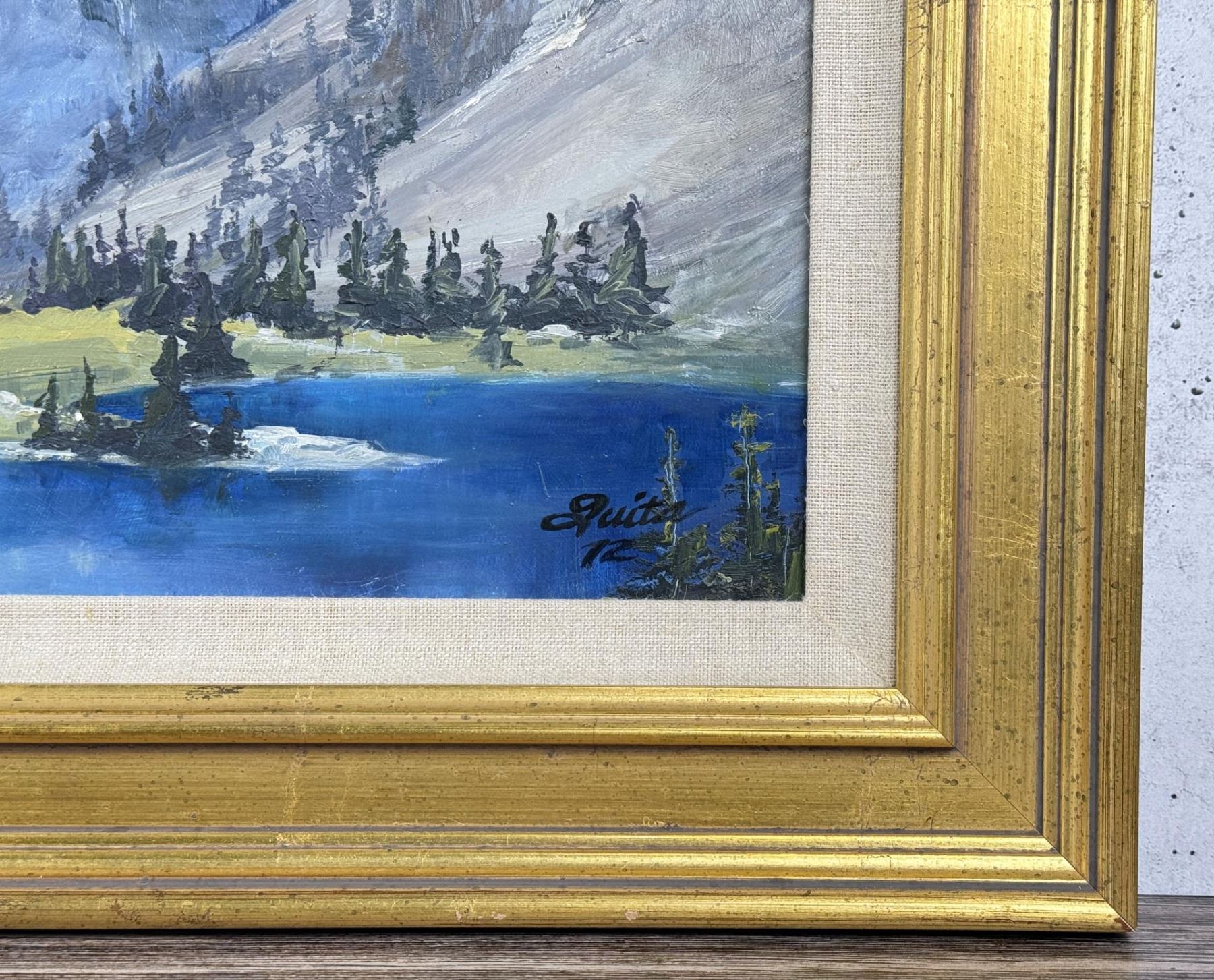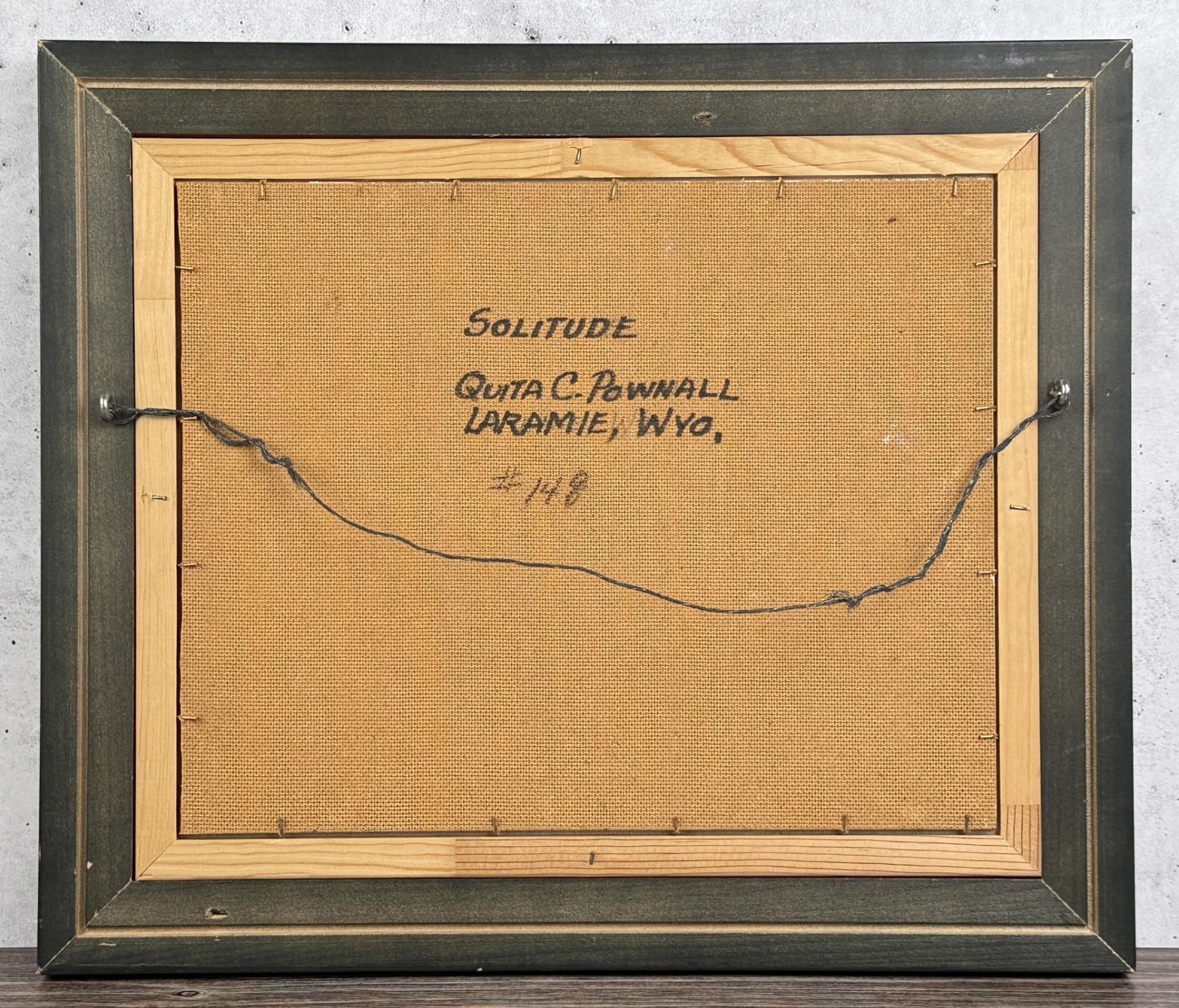 Title is Solitude. 12" by 15" unframed. 17" by 20" framed. Oil on Board. Quita Charlyne Pownall (Born 1928) is active/lives in Wyoming. Quita Pownall is known for Landscape, Native American portrait.
