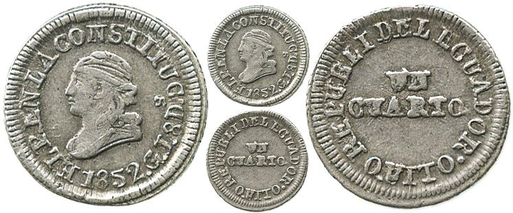 Quito, Ecuador, 1/4 real, 1852GJ.