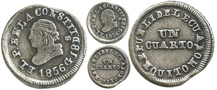 Quito, Ecuador, 1/4 real, 1856GJ.
