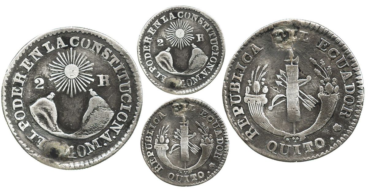 Quito, Ecuador, 2 reales, 1840MV, inverted A for V in assayer.