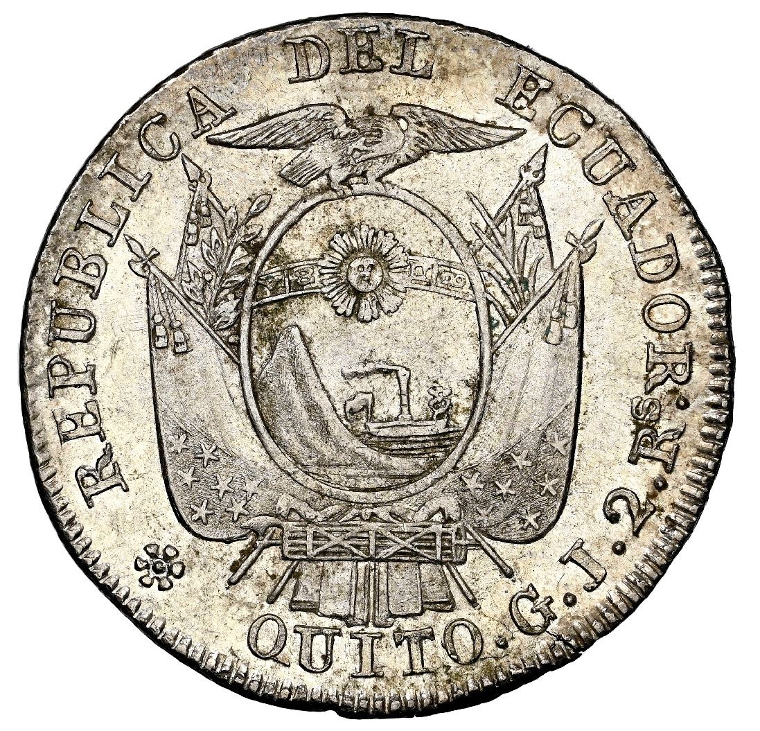 Quito, Ecuador, 2 reales, 1850 GJ, NGC MS 61, finest known in NGC census.