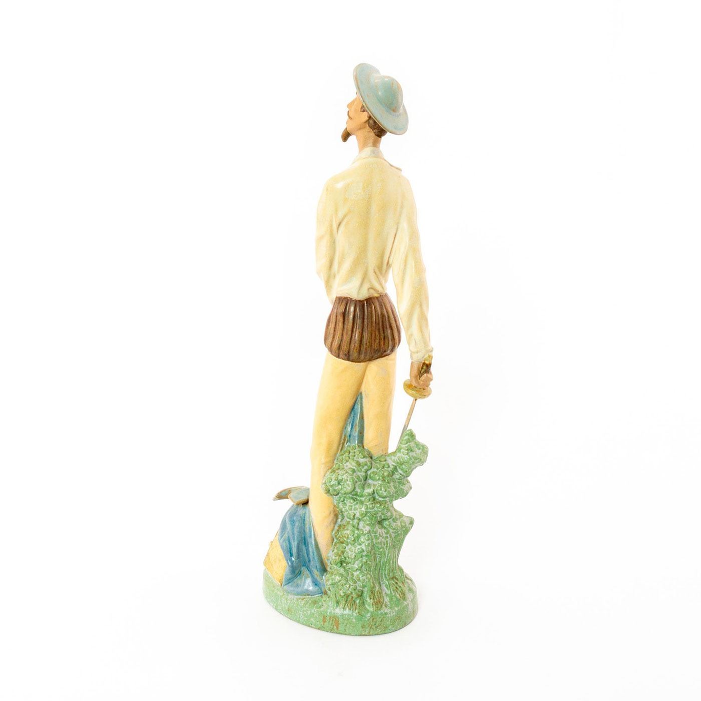Gres finish. Don Quixote standing with sword in hand next to armor plate and books. Lladro backstamp. No original box. Some markings throughout.