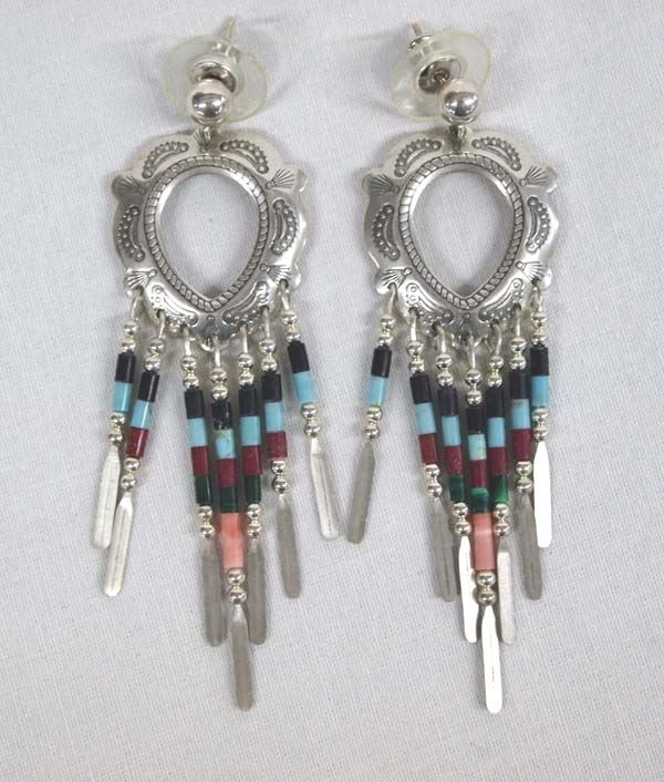 Quoc Turquoise Company Albuquerque NM Sterling Silver Earrings, measure 2.5''L x .75''W and weigh 7.3g in total wt.
