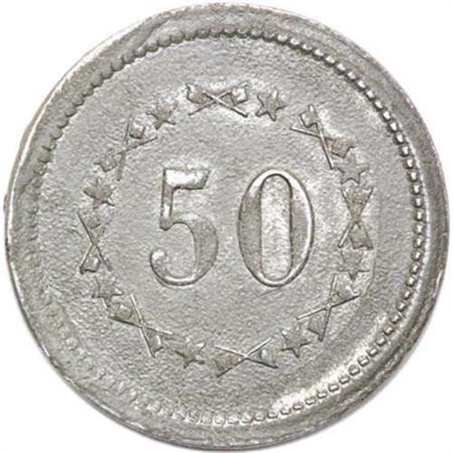 <B>R.6 Sutler Token, J.J. Benson, 1st Mtd Rifles.</B></I> Schenkman-A50WM, Curto-34. White metal, 26 mm, R.6. Civil War Sutler token issued by <B>J.J. Benson </B></I>for the 1st Mtd Rifles of New York. The token was good for 50 cents. <BR> <BR><BR><b>Shipping:</b> Coins & Currency (<a target="_blank" href="http://www.heritageauctions.com/common/shipping.php">view shipping information</a>)