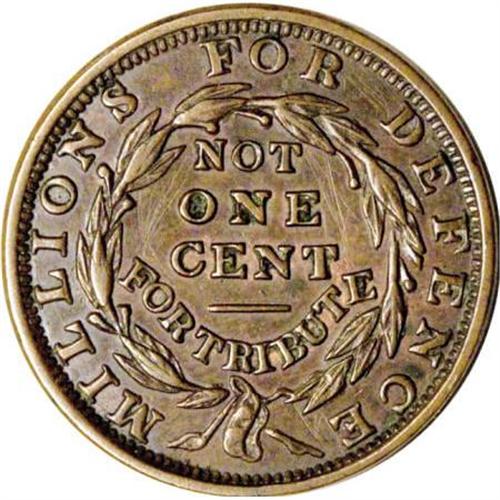 <B>Merchants Exchange XF45 Scratched Uncertified.</B></I> Low-96, HT-292, R.7. The similar HT-291 and HT-293 are common, but HT-292 is a great rarity, identified by two leaf tips between the FE in DEFENCE. A well-detailed chocolate-brown example with faint pinscratches on the obverse exergue and various portions of the reverse field.<BR><BR><b>Shipping:</b> Coins & Currency (<a target="_blank" href="http://www.heritageauctions.com/common/shipping.php">view shipping information</a>)