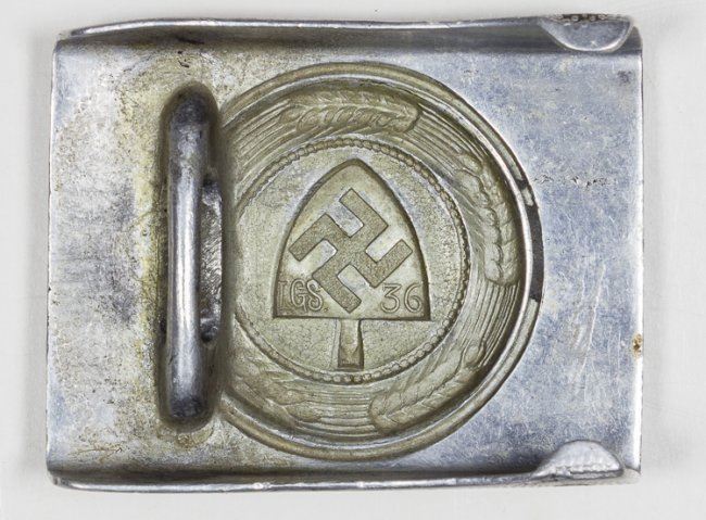 R.A.D. belt buckle, stamped "LGS 36" within. Some wear and a scrape, still good.