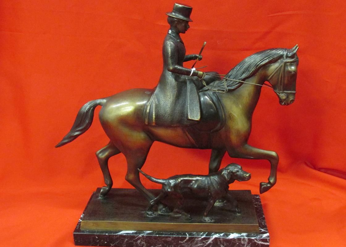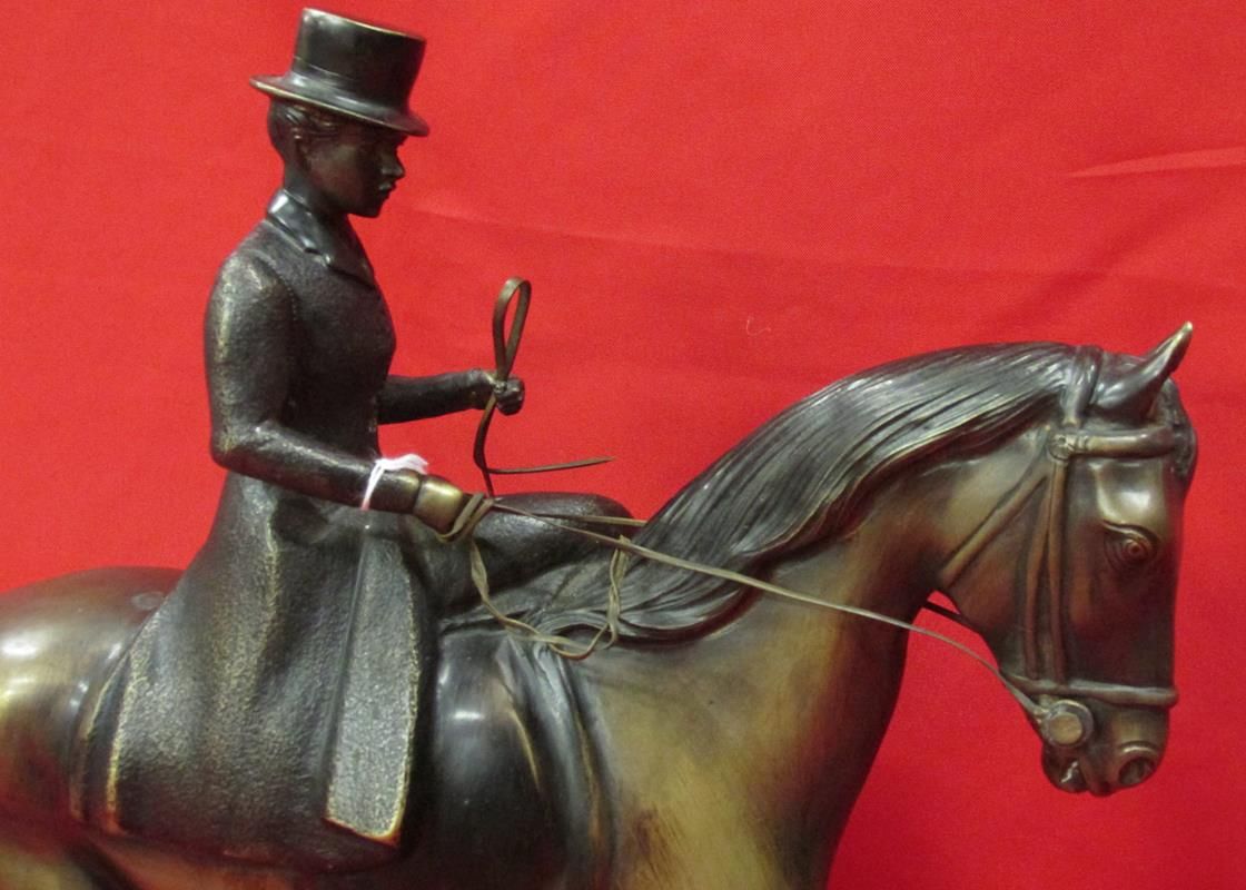 R.A. Seluca bronze Equestrian statuary of madame with dog