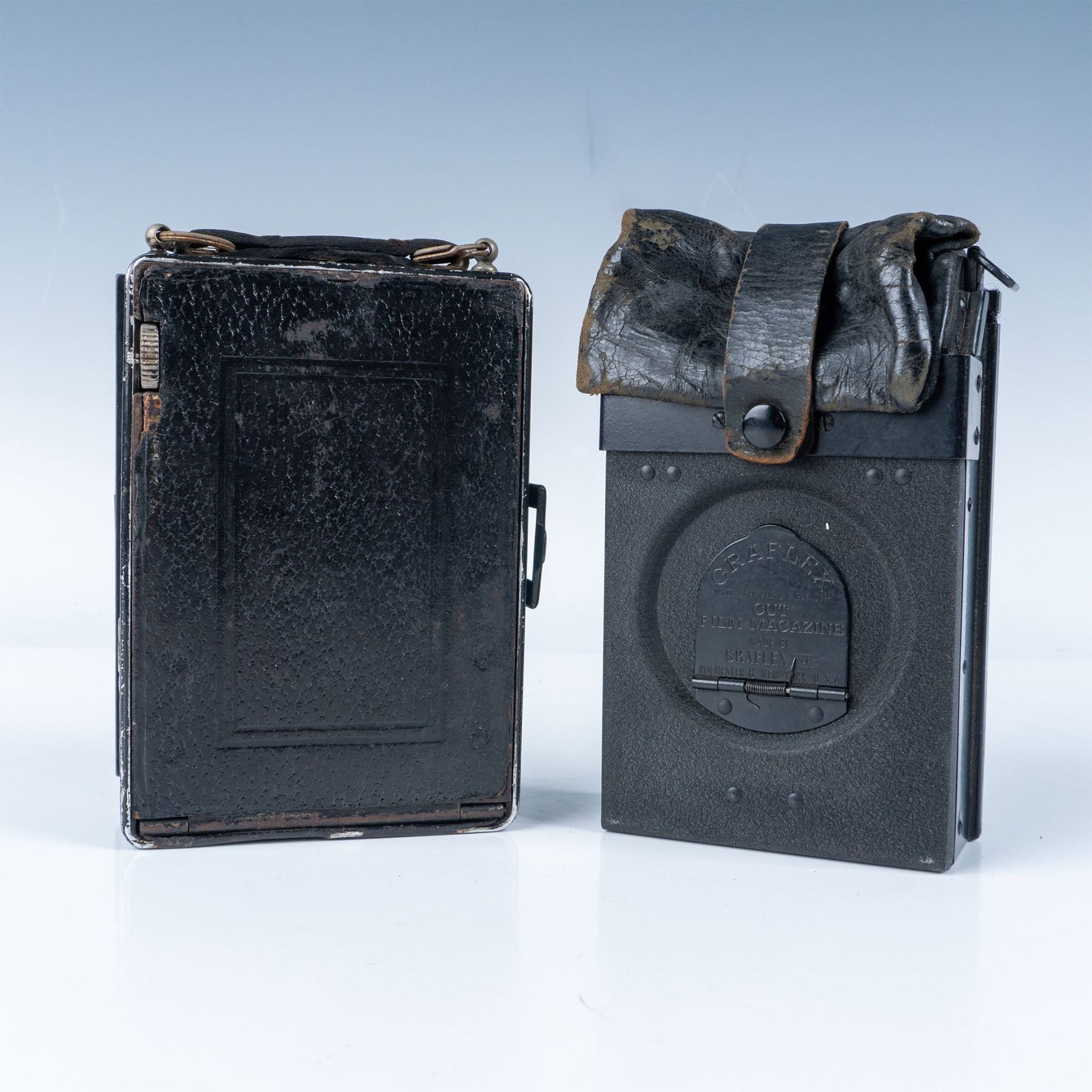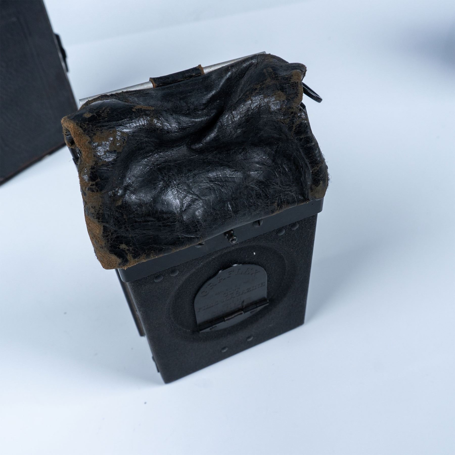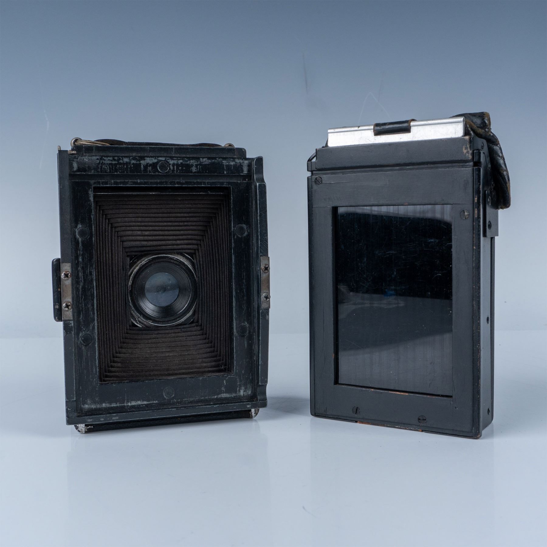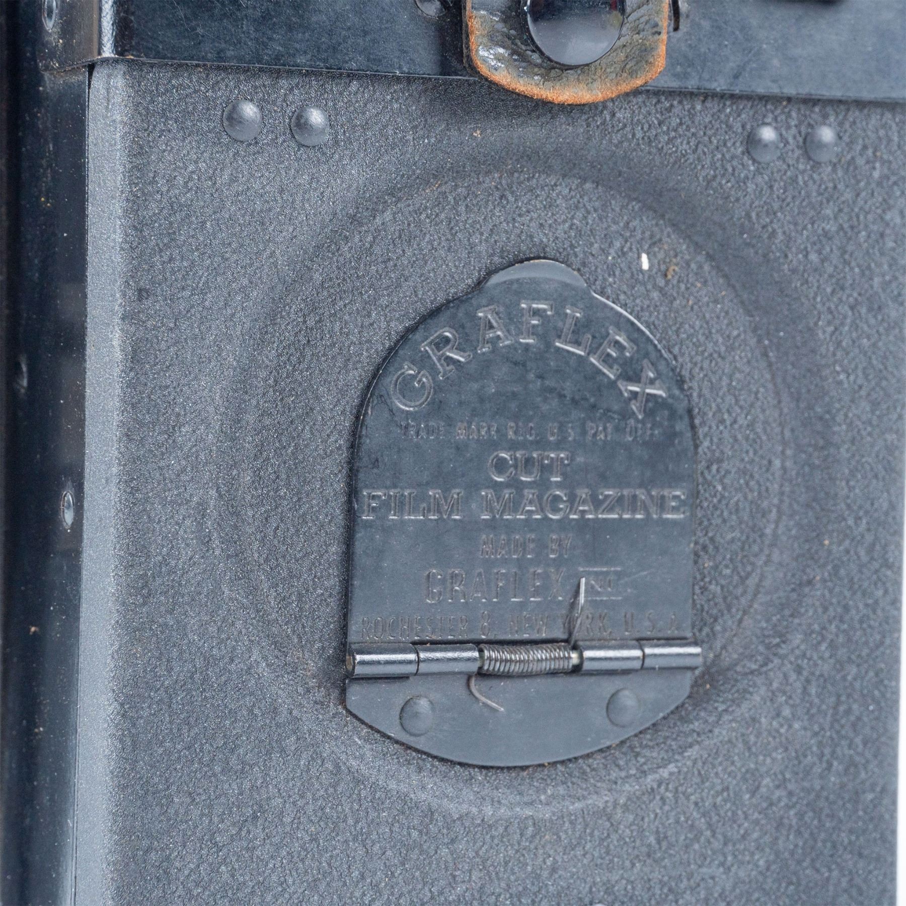 This is a vintage Graflex folding camera, a hallmark of early 20th-century photography equipment. Known for its compact design and professional quality, the Graflex series gained widespread popularity among both amateur and professional photographers during its era. The camera features a collapsible bellows design, a lens marked with precise adjustment dials, and an engraved backplate detailing its Graflex branding. Additionally, it includes its original leather carrying strap, showing signs of age consistent with use. The design embodies the craftsmanship and durability of Graflex products, which were highly regarded for their reliability in fieldwork and studio photography.