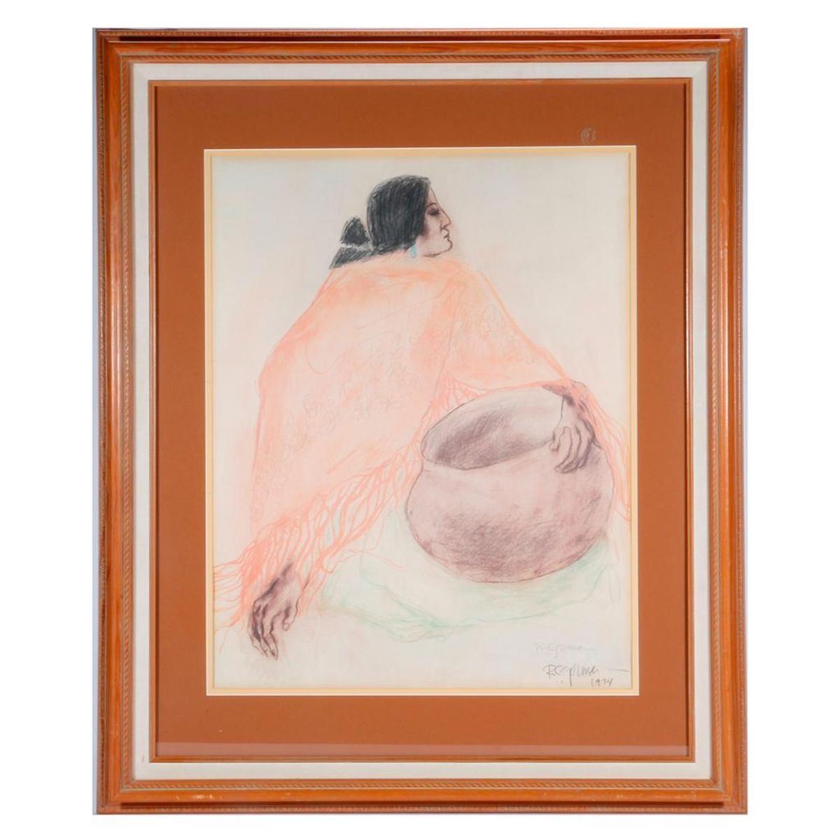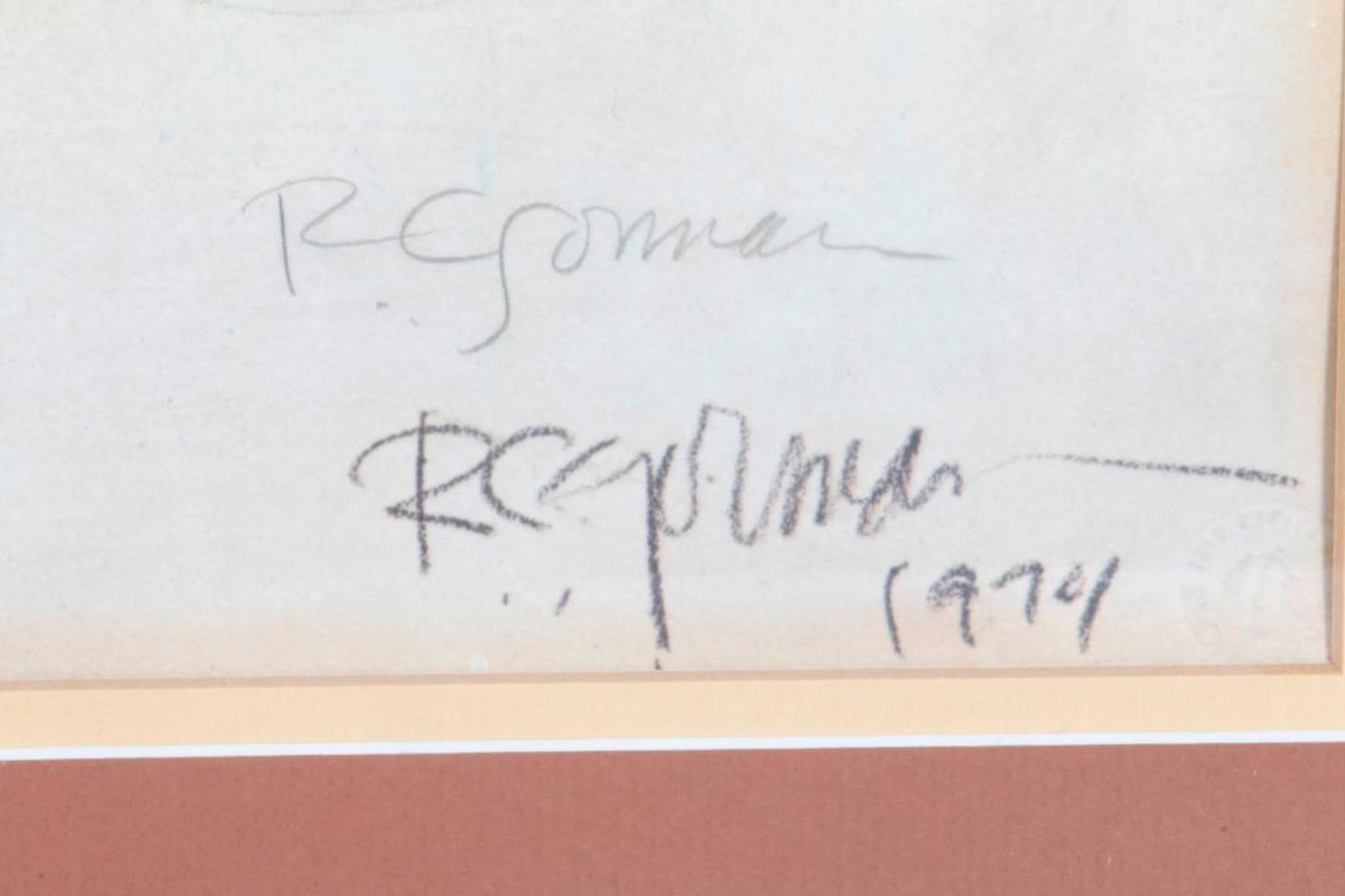 A large print by R. C, Gorman (1932 - 2005) dated 1974 measuring 23 " x 18 1/2 ", pencil signed lower right. Frame 34 1/2 " x 24 1/2".