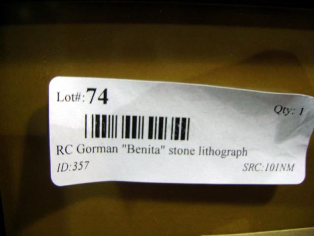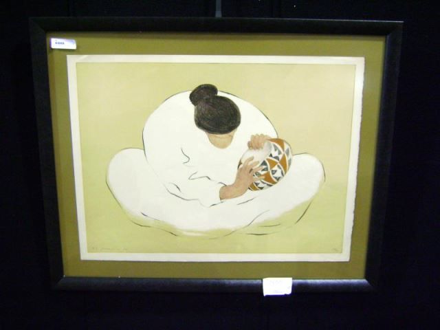 R.C. Gorman 1981 Stone Lithograph Entitled Benita- Woman Dressed in White Holding a Painted Terracot