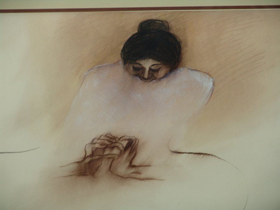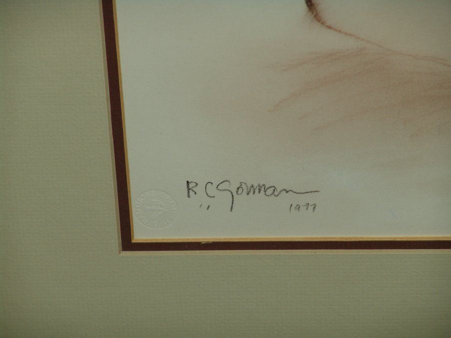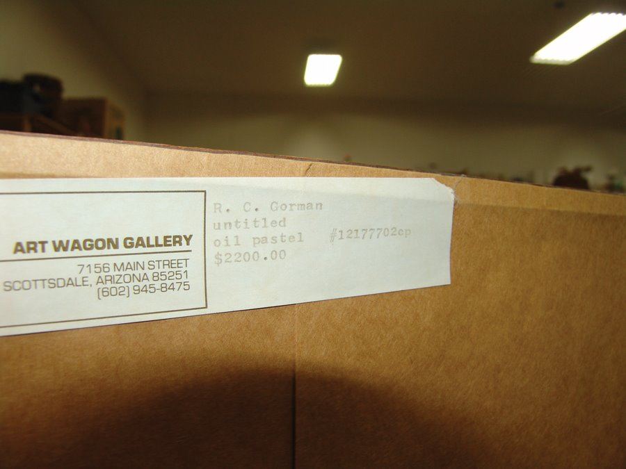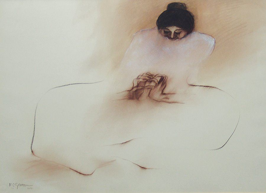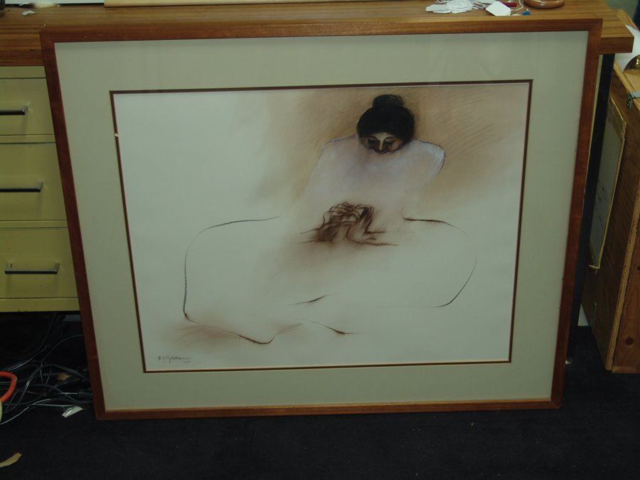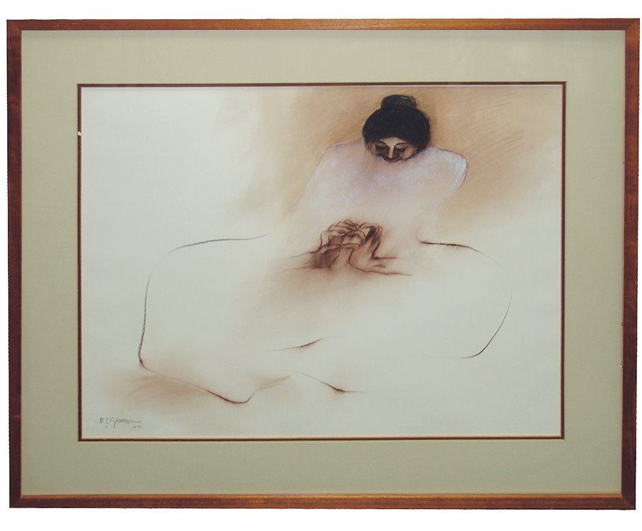 Large, rare, signed original oil pastel on paper showing a seated Navajo woman in contemplation, with her fingertips touching. Very good condition, matted and framed. Untitled.,,23" x 29" (31" x 28")