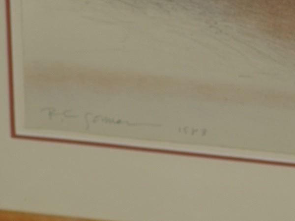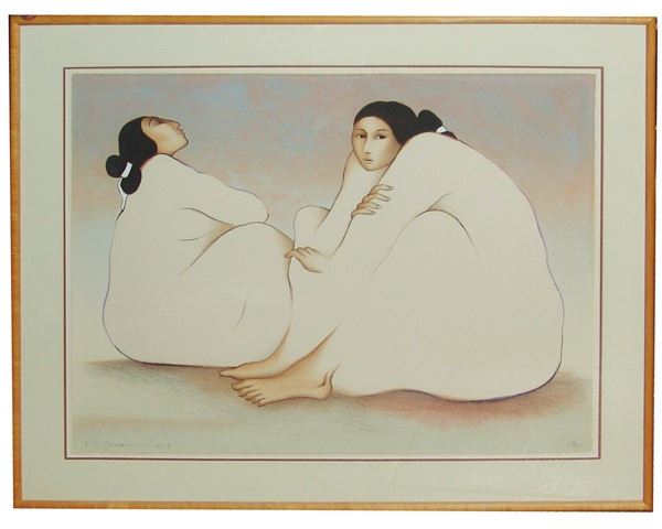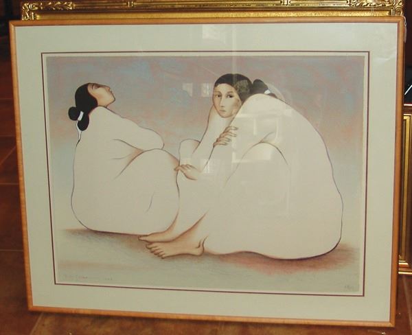 Large, signed limited edition (#63/200) lithograph on torn paper titled "Women from Chaco Canyon." Very good condition, double matted and framed.Ca.198324" x 32" (32" x 40")