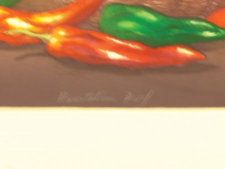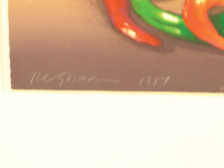 1987, Fantastic, signed limited edition (presentation proof) full color serigraph title "Chili Peppers." This may be his most well known work and is the one used for the cover of his book. Excellent condition. 27" x 35" (37" x 45" framed)