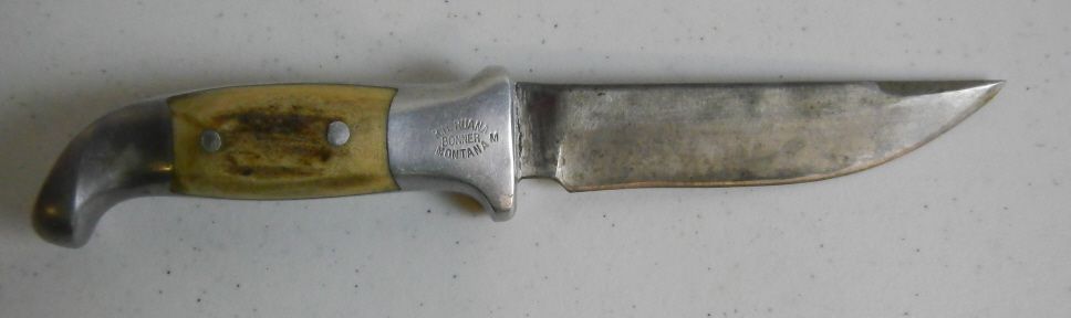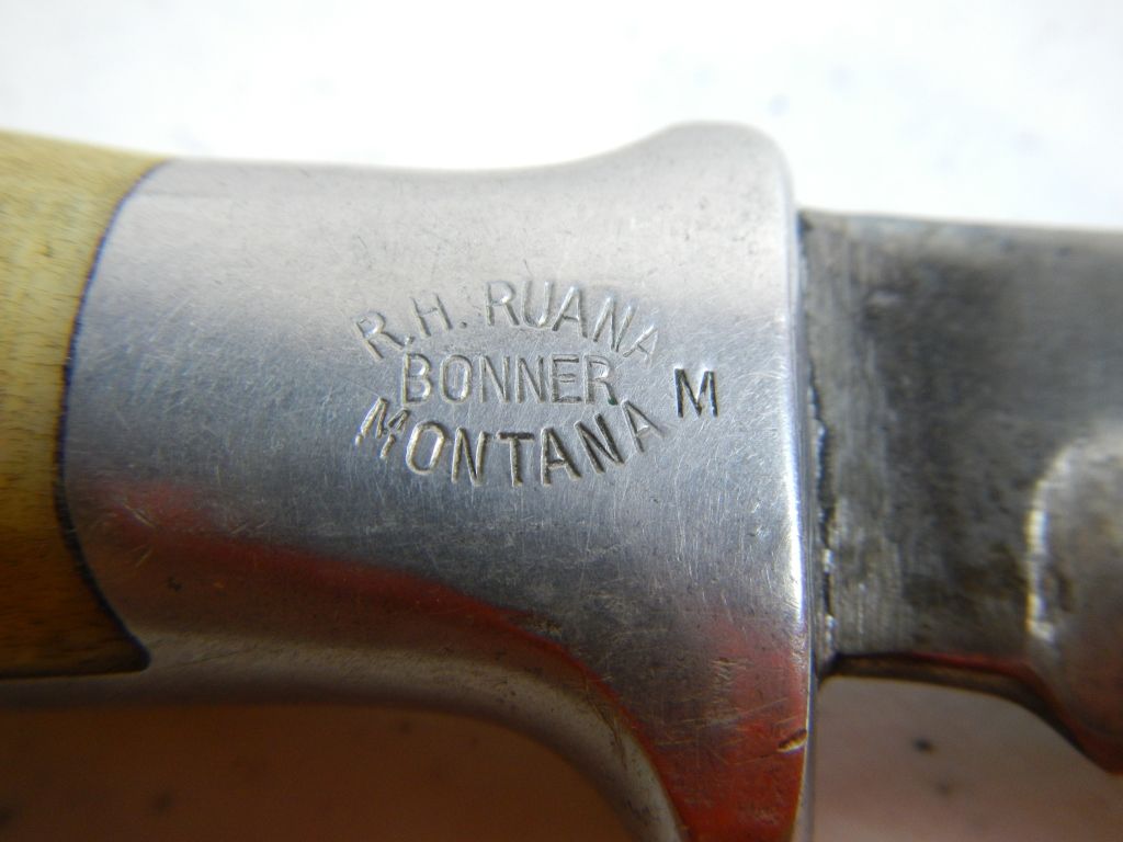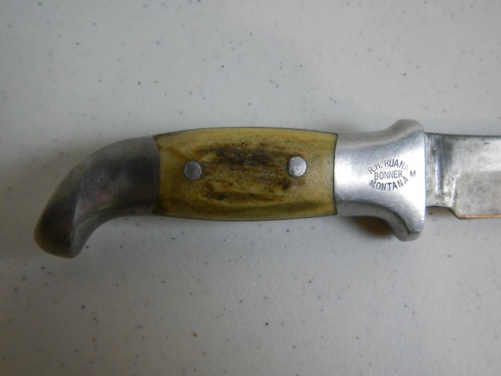 R.H. Ruana Knife This Knife is circa 1960's made by Rudy Ruana in Bonner, Montana. This Knife is stamped "M" and has Antler Grips.