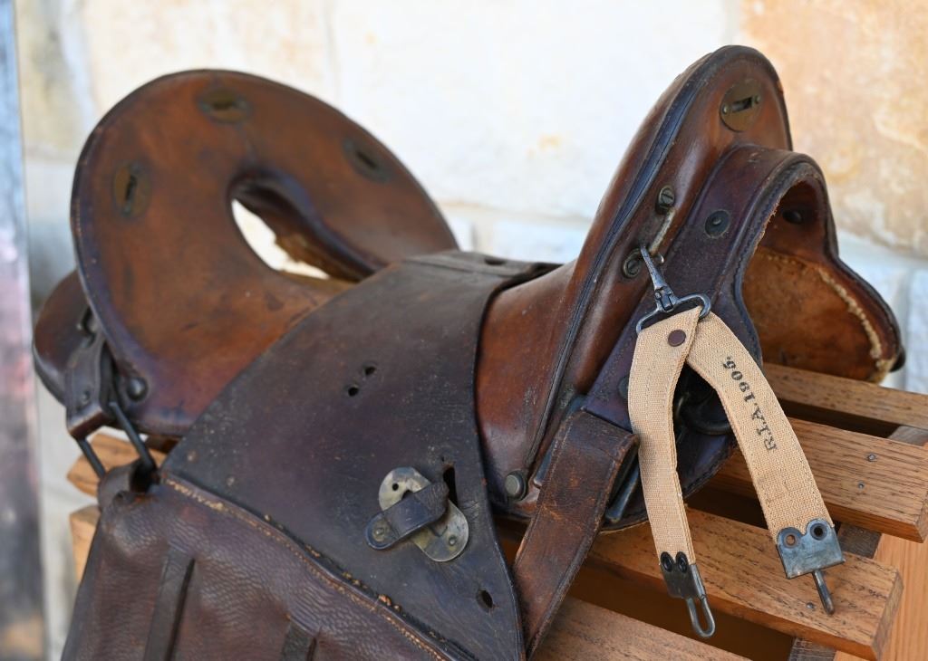Includes display stand. 11 1/2" Seat. Rock Island marked saddle bags.