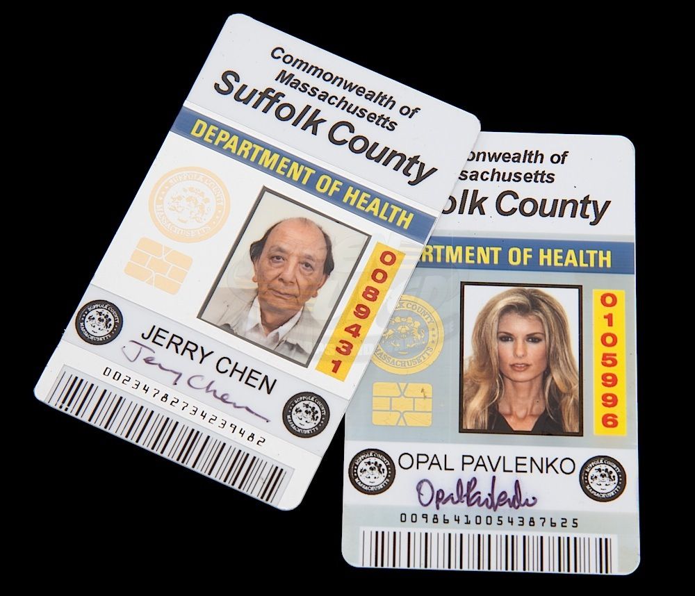 (Universal Pictures, 2013) This set of Department of Health ID badges were custom-made by the production for use by Jeff Bridges and Marisa Miller as "Roy" and Ryan Reynolds and James Hong as "Nick". The badges feature the photo and signatures of Roy and Nick's Avatars for use on Earth.