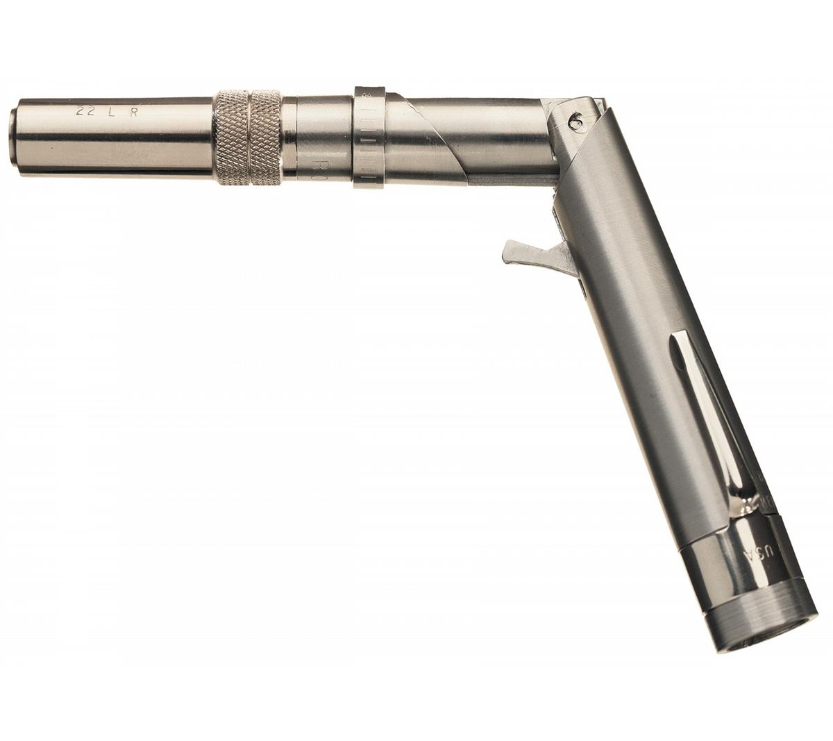 Manufactured from 1995-97. This rare pistol resembles a pen. The forward portion including the barrel must be pulled and bent into the "L" shaped firing position. Complete with a black nylon belt pouch.