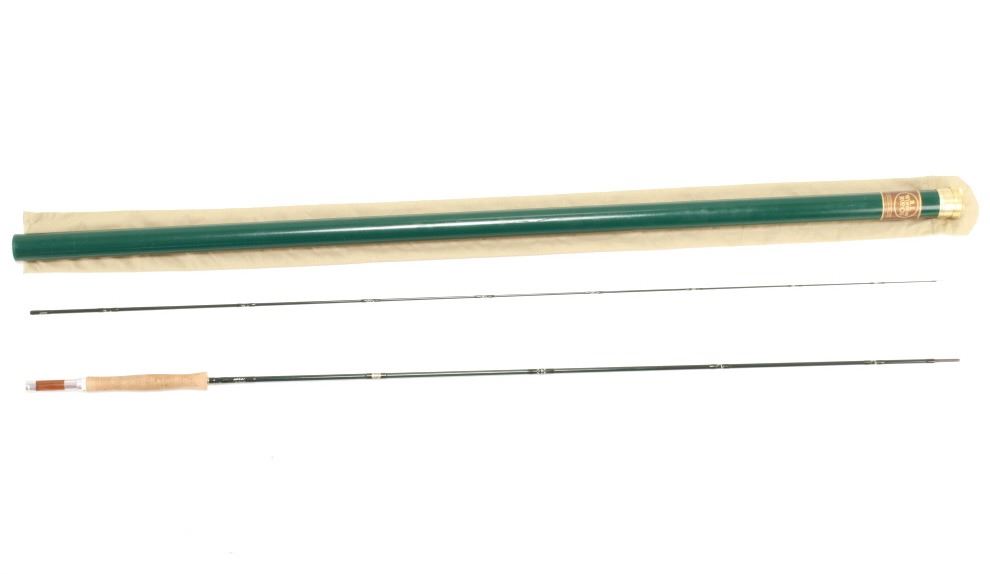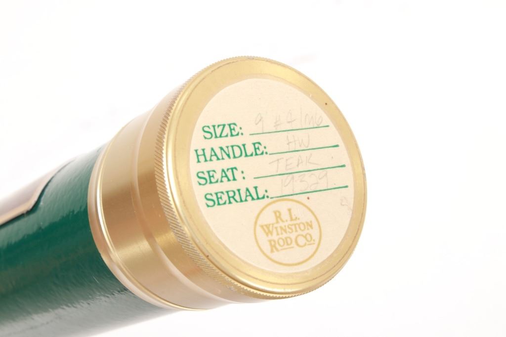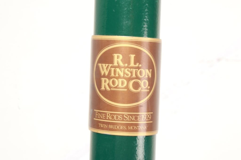 Featured in this lot is this R.L. Winston Rod Co. 9' #4 IM6 2 5/8oz. two-piece fly rod. This is a Graphite rod in two pieces with a medium action and spigot ferrules with a nickel silver and teak insert real seat with versatile all water trout application. This rod features hand inscribed information as follows: IM6 - 9' #4 - 2 5/8 oz. - 19329 on the base and 19329 on the tip section. The rod case is original with the company logo and inscription on the lid as follows: Size: 9 #4 IM6 - Handle: HW - Seat: Teak - Serial: 19329. The condition of this rod is good with no obvious signs of damage and in good overall condition. The measurements of this rod are 9 feet in length and 1 1/8".
