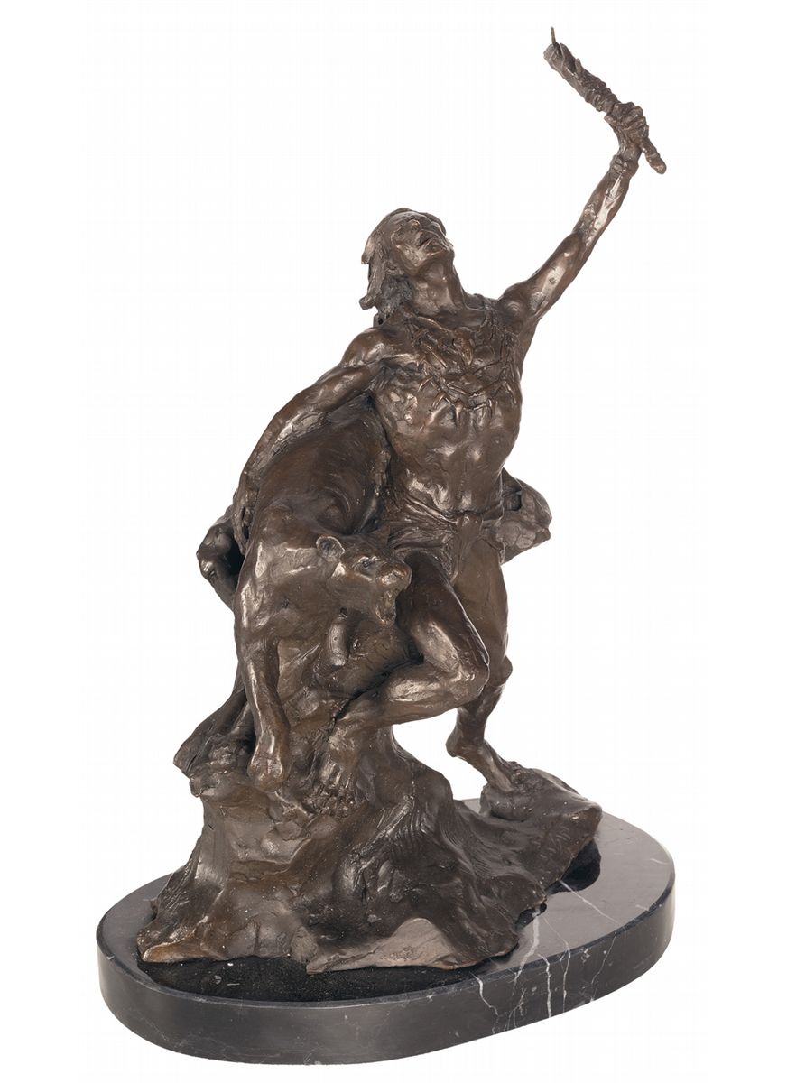R Libin Marked Native American Indian and Mountain Lion Bronze