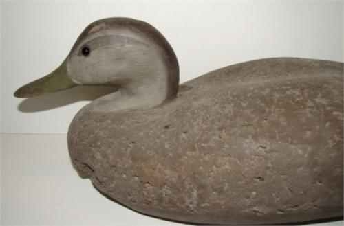 R. MADISON MITCHELL (1958) HAVRE DE GRACE, MARYLAND BLACK DUCK DECOY. Cork body. Signed on bottom “R. Madison Mitchell/1958”. 18.5” L