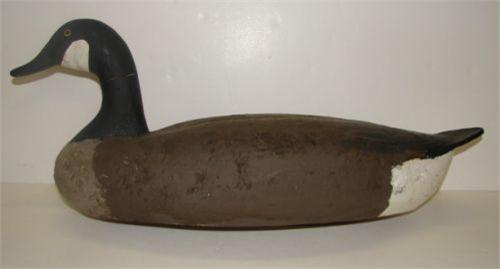 R. MADISON MITCHELL HAVRE DE GRACE, MARYLAND CANADA GOOSE DECOY. Two piece body. Has been repainted. Lead weight at bottom. Neck shows crack in wood. Marked on bottom "R. Madison Mitchell/1958". 25" L
