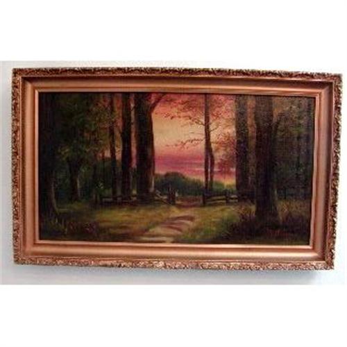 <tr><td>Title:R. Mower "Sunset" Landscape Oil Painting d.1923</td></tr>