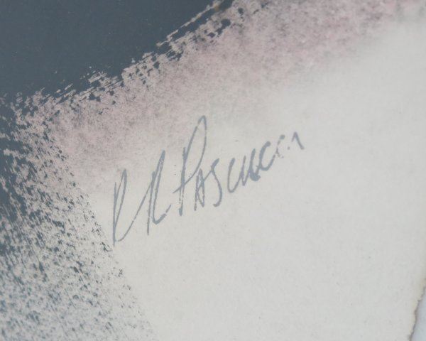 Oil on paper. Framed. Signed lower right. Approx. 36" x 26" without frame, 42" x 32" with frame. Good condition.