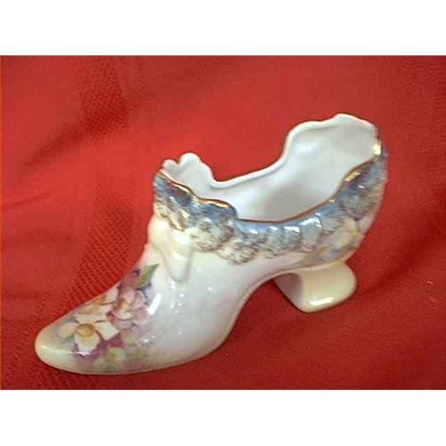 R S decorative shoe measuring 6.5 inches wide and 3.5 inches high. The shoe is in excellent condition with no chips, cracks or other flaws. The mark reads, ?RS? with a wreath around it and a star at the top.