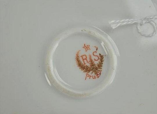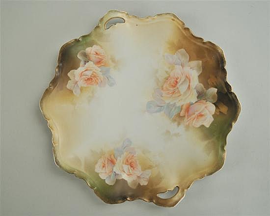 R.S. Prussia Handled Plate, rose motif, red mark. 12in Dia.