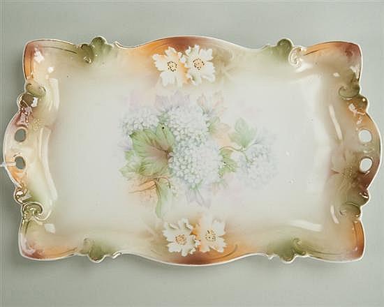 R.S. Prussia Handled Tray, floral motif, red mark 12in L, 7in W