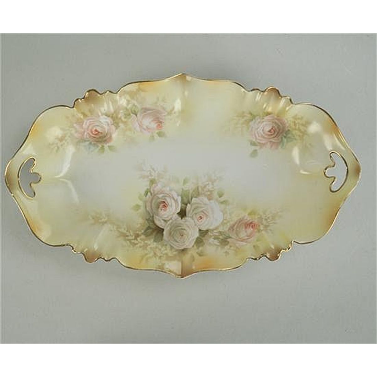 R.S. Prussia Oval Handled Tray, floral motif, red mark. 12 1/4in L