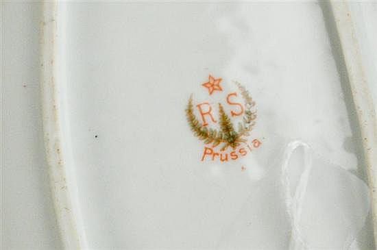R.S. Prussia Oval Handled Tray, floral motif with gilt trim, red mark. 9 3/4in L