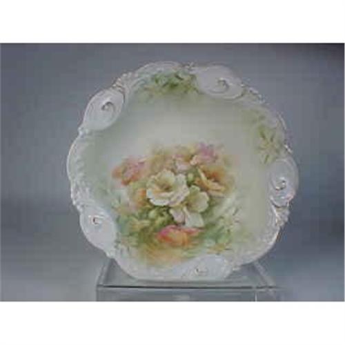 10 inch diameter ** Pink, Yellow and White Poppies on White Background ** Slight wear on Gold Edge, otherwise Excellent Condition ** No chips