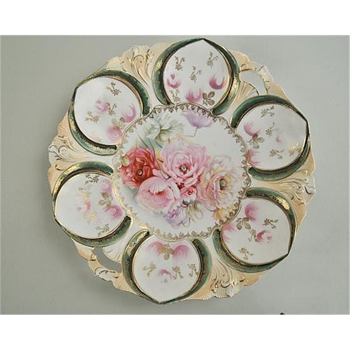 R.S. Prussia Sculptural Handled Plate, rose motif, red mark. 11in Dia.