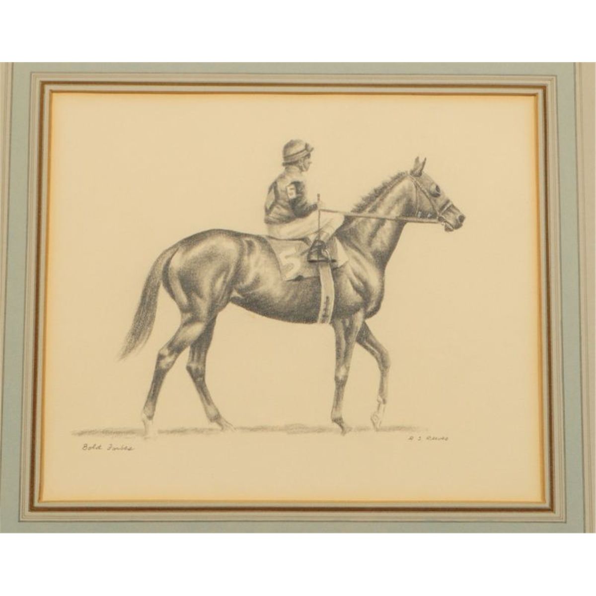 Richard Stone Reeves Original Pencil Drawing of Bold Forbes used in the book Decade of Champions (page 159). Image Measures 10" x 8 1/4".