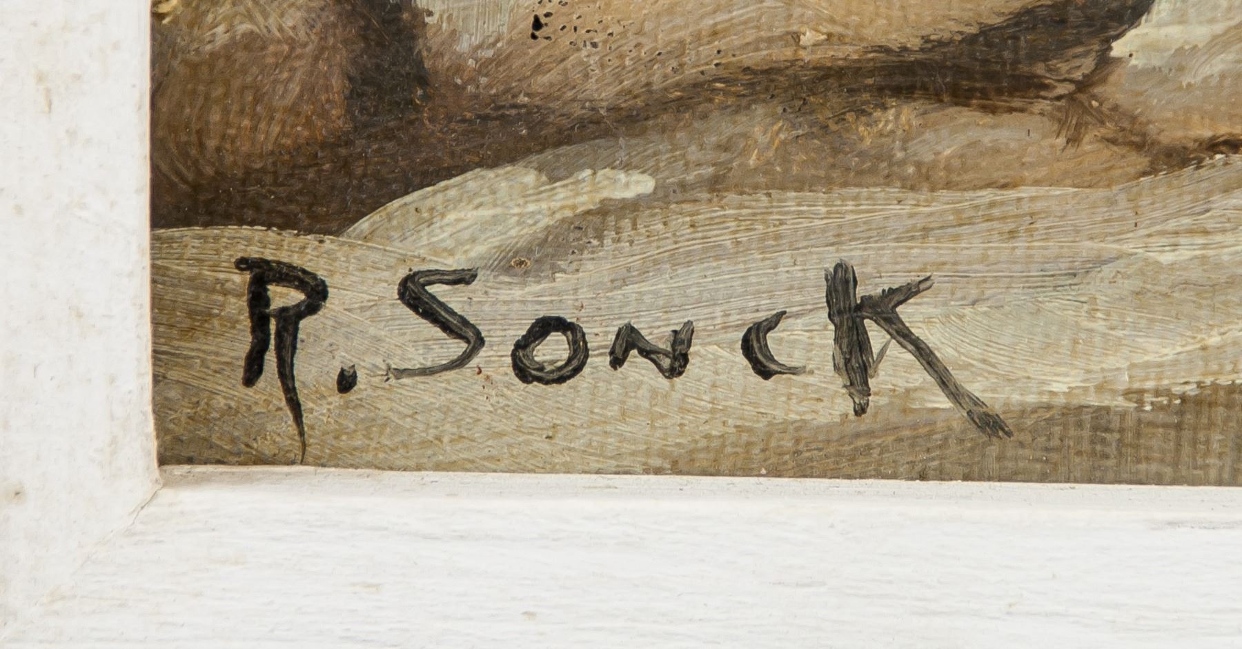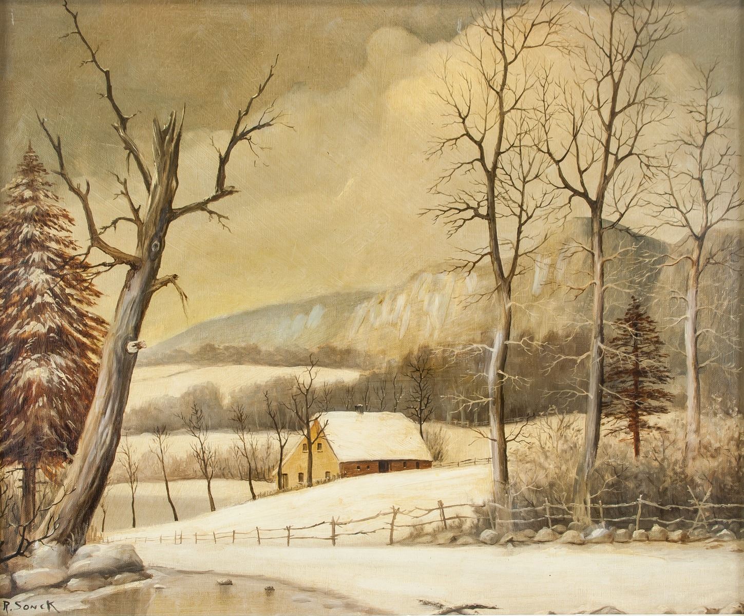 Oil on canvas, framed. Featuring a Canadian landscape scene. Signed and attributed to R. Sonck (Dutch-Canadian artist, early 20th century) on the lower right corner. 49 x 60 cm (19.3 x 23.6 inches). Frame size: 62 x 73 cm (24.4 x 28.7 inches). PROVENANCE: Private collection (Toronto, ON)